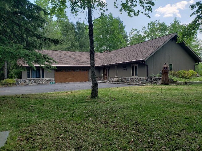 You’re going to fall in LOVE with this BEAUTIFUL 3 Bedroom, 2.5 Bath ranch-style home that has it ALL! Privacy and Wildlife abounds on this well-wooded 5.1 acres of secluded land with 473 feet of natural & sand frontage. The lot offers a wonderful Southern exposure with outstanding views from every room in the house! The inviting entrance leads to the kitchen and dining area with ceramic tile floor, abundance of oak cabinets & pantry and a center island w/two stools. The dining area is completely lined with windows overlooking the deck, yard & lake. Next the large Great room has an incredible floor to ceiling stone fireplace with oak built-ins on the sides and with a vaulted ceiling. A wall of windows allows the outside in and offers more speculator views! The far end of the great room has a wonderful oak wet bar and cabinets with a round table perfect for entertaining and playing cards & games! Off the great room is a large master bedroom suite with a 12 foot patio door unit opening to the lakeside deck with vaulted ceiling, carpeting and two closets. A full bath lined with ceramic tile, new walk-in shower, whirlpool corner tub, double sinks with a tall double storage/linen cabinet and a separate toilet room w/window. In the master suite there is a walk-in closet and linen closet with a hamper chute to the laundry room. The laundry room is lined with more oak cabinets, long counter top, utility sink and washer & dryer. At the other end of the house, you’ll find two bedrooms, a full bath with ceramic tile, tub/shower, toilet & vanity and a hallway closet around the corner. The second “master-like” bedroom has a large patio door to the deck, two closets, carpeting and with vaulted ceiling. A bathroom is right across the hall. The third bedroom has 2 twin beds, carpeting and a closet. Off the hallway is a utility room, large storage closet and the door to the attached 2-car garage. Attached to the garage is an additional bonus room for an office or hobby area with a work bench, closet, open wall shelving and a half bath. A nice large picture window lets the light in and offers many possibilities for this extra area! The fabulous lakeside deck that runs along the full length of the home and has a tiered walkway with two additional decks which lead down to the lake, the pier and a dry boathouse with a track system & has electricity. Enjoy the lakeside flagstone fire pit in the evenings! Many recent updates include: roof shingles w/gutters & leaf guards, exterior paint, some new windows, high-quality window treatments, new walk-in shower, new 20 ft. shed w/electric, new dishwasher, and a newer Generac whole house generator! The attached garage is insulated & heated and has a work bench and includes an extra refrigerator & freezer. A meandering black-top driveway leads you to this meticulously maintained home that is ready for you to move in! Located minutes from downtown Mercer and all the recreational trails Mercer offers! Don’t miss your chance to own this remarkable lake home with a great price! Call Dee today for your private viewing by appointment only.